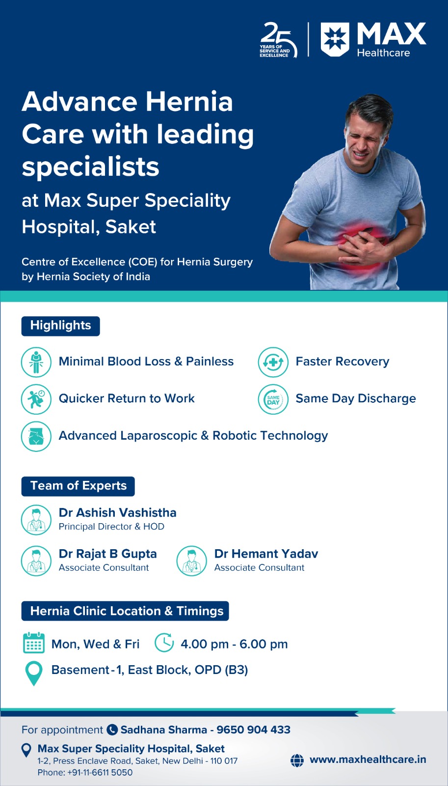 Dr. Ashish Vashistha is a trailblazer in Minimal Access and Bariatric Surgery, with over 28 years of experience. His credentials include: